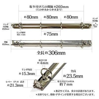 A4リングバインダー金具4穴TRA4-4H-20R(立テコ)【ニッケル】1本